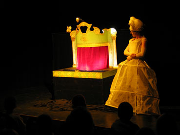 An Details, wie Samtvorhang und Goldstuck, wurde nicht gespart. Alles ist bei der winzigen Barockbühne vorhanden, was auch bei einer großen Theaterbühne nicht fehlen darf - der Maßstab ist nur ein anderer. Der Vorhang öffnet sich und fingergroße Marionettenpuppen werden von den Spielern geführt, die mit ebenso viel Liebe angefertigt sind, wie die puppenhausähnliche Kulisse.